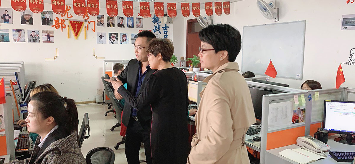 滄州師范學(xué)院商學(xué)院院長(zhǎng)張鳳燕女士、廣告學(xué)專(zhuān)業(yè)教授王麗芳女士和學(xué)生代表一行對(duì)滄州智博信息技術(shù)有限公司的辦公環(huán)境、日常工作、公司榮譽(yù)、團(tuán)隊(duì)建設(shè)、企業(yè)文化等進(jìn)行了實(shí)地參觀(guān),整潔的辦公環(huán)境、堅(jiān)實(shí)的技術(shù)實(shí)力、年輕朝氣的團(tuán)隊(duì)成員、創(chuàng)新進(jìn)取的企業(yè)精神給她們留下了深刻印象。